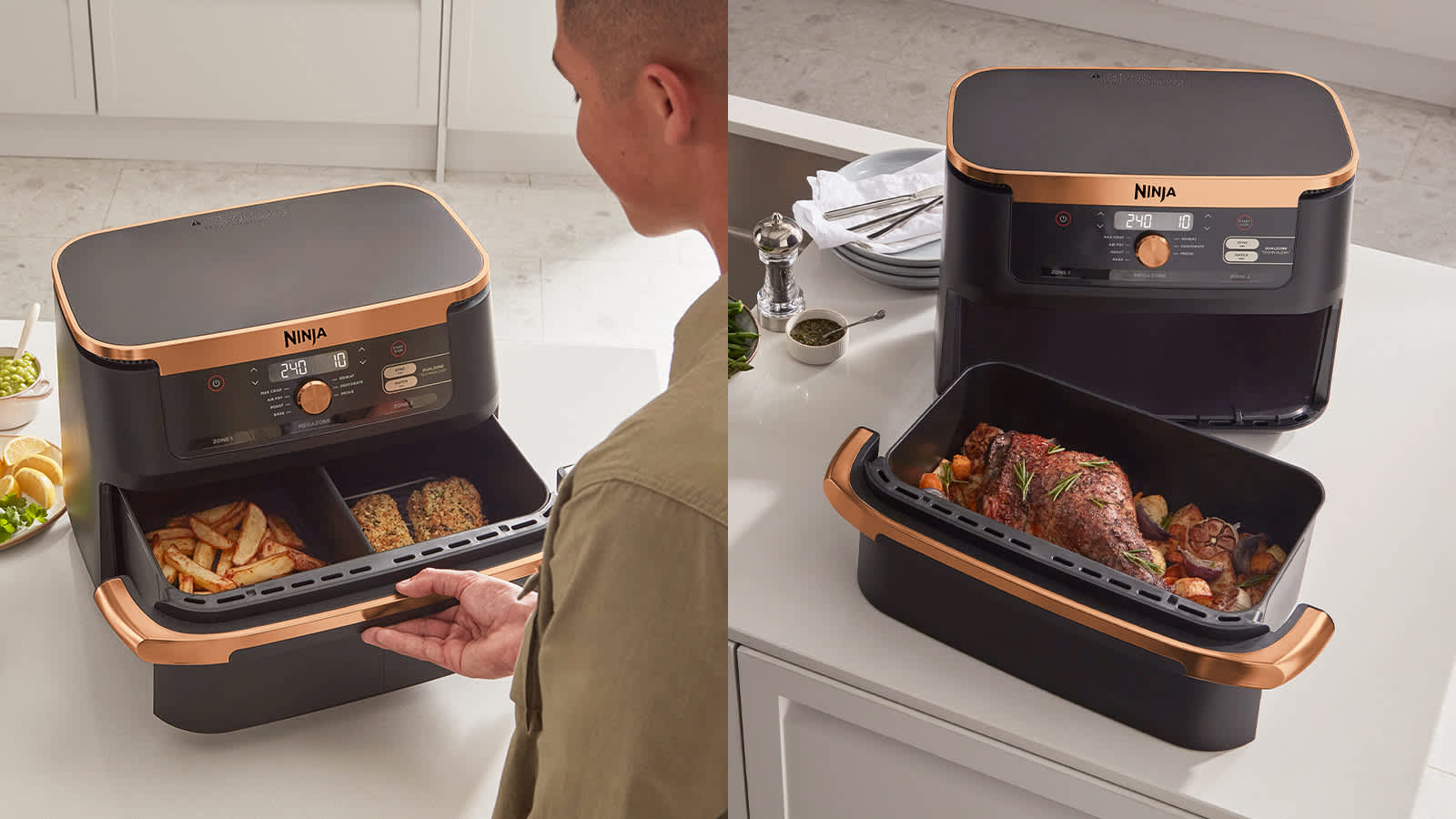 Te presentamos la Ninja Foodi FlexDrawer: la Freidora de aire de de gran capacidad de Ninja que se adapta a cada plato.